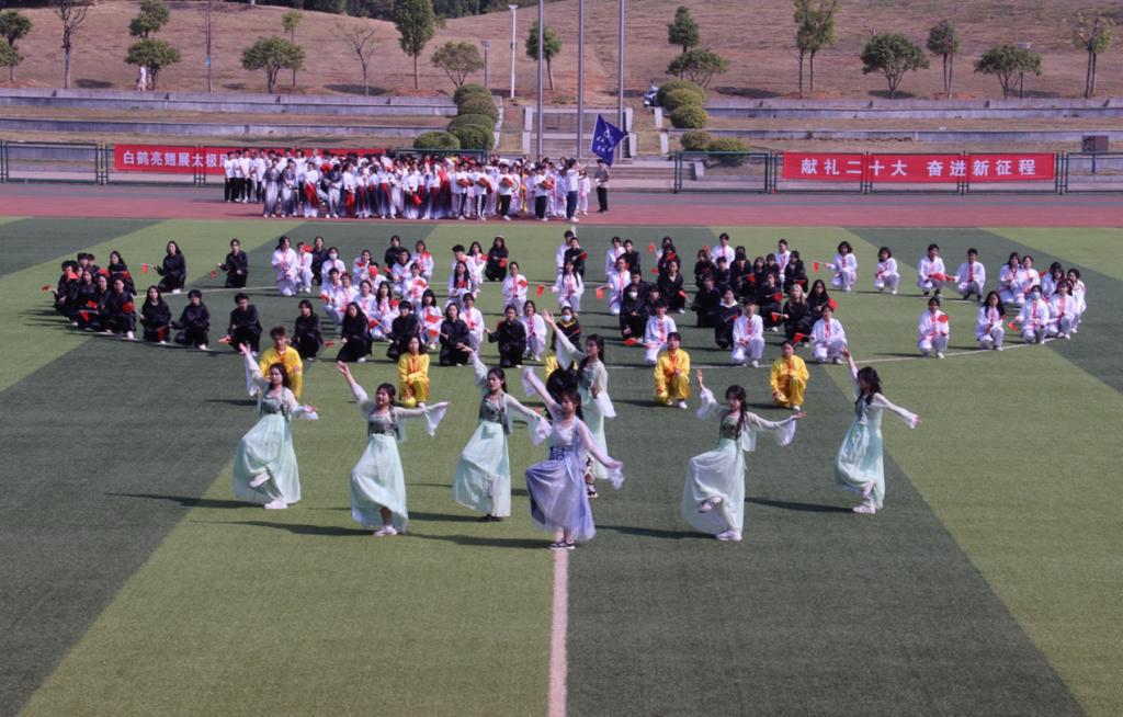 阳光悠悠洒向大地,洇染出一幅水墨画。操场上,同学们如松般笔直站立,黑白两色衣服相间勾绘,形成一幅太极图,黄色衣服的点缀更是让其熠熠生辉。
