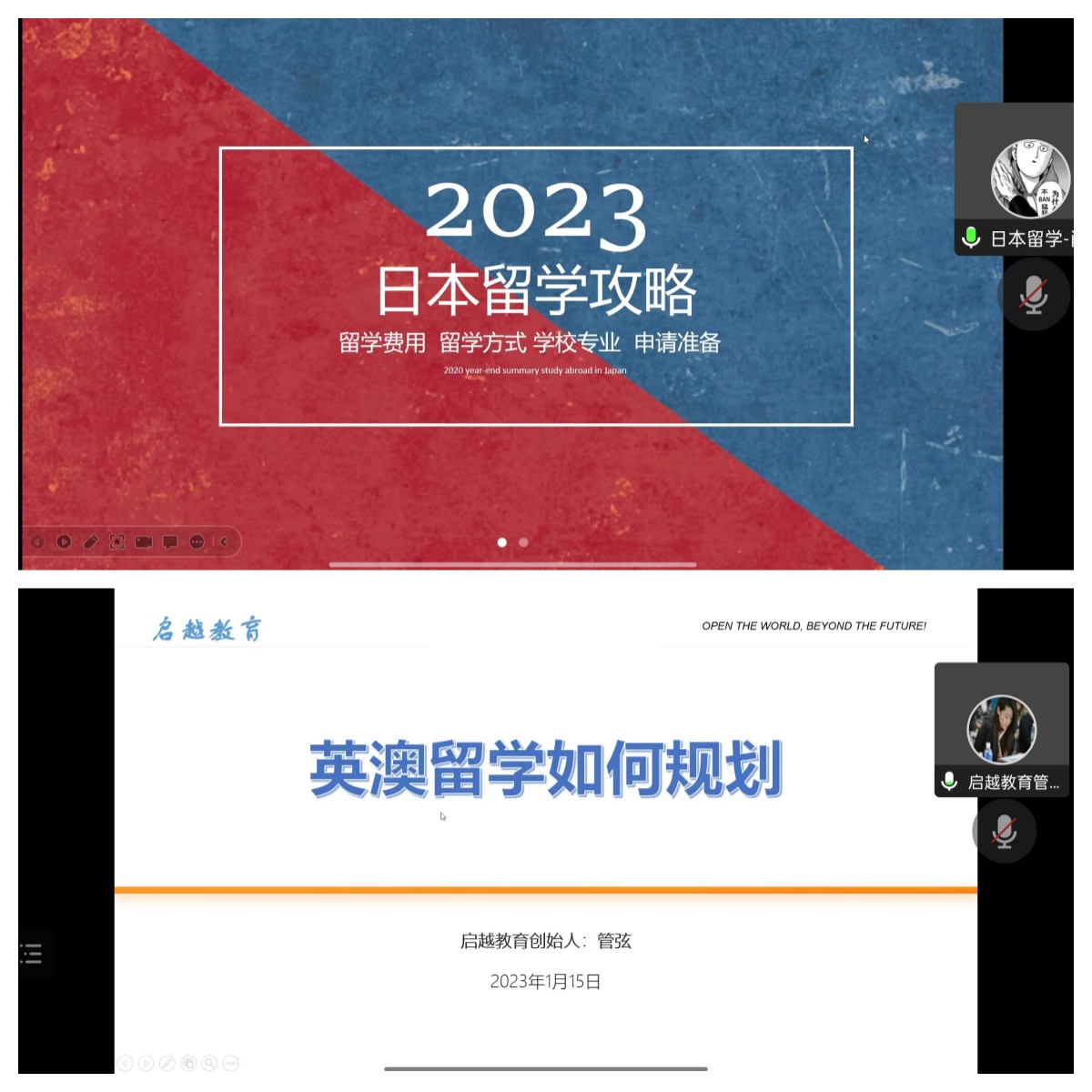 1月15日晚7点,yl7703永利“考研后,赋能加油站”活动第二场,启思越见教育创始人管弦联合日本留学资深老师肖慈开,为同学们带来“2023年秋季留学国外名校录取冲刺”讲座,与大家详细分享了与服装专业相关的日本、英国澳洲等国外公司的申请情况。