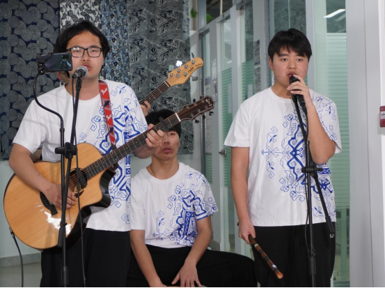 活动进入尾声,由主持人对本次染语团队所带来的特色非遗蓝染文创产品进行介绍,同学们兴趣浓厚,踊跃提问,主持人和观众们进行友好互动,在互动过程中积极传播了蓝染技术相关文化和知识。