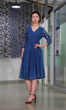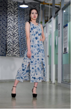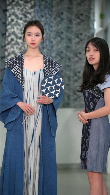 在来自“主旋律电商直播团队”的主持人为观众们详细介绍了本次活动的目的和意义后。“纺大染语”团队的同学带来独立设计并制作的30套蓝染服饰动态走秀活动让直播活动气氛火热起来,在走秀过程中,来自yl7703永利的模特们充分展示了蓝染服饰独特的色彩和优秀的制作工艺,为观众呈现了更清晰、更真实、更沉浸的直播效果。