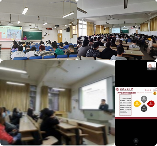 各年级辅导员结合19级3名退役同学通过享受士兵专项政策成功考取硕士研究生的的事迹,从思想教育、政策解读、职业发展、就业指导等方面,进行了全面讲解。活动中,老师们从政治账、经济账、前途账等方面耐心为同学解惑答疑,鼓励同学将个人理想融入到强国梦、强军梦中去,携笔从戎,积极踊跃报名参军,能够到部队去磨练自己。