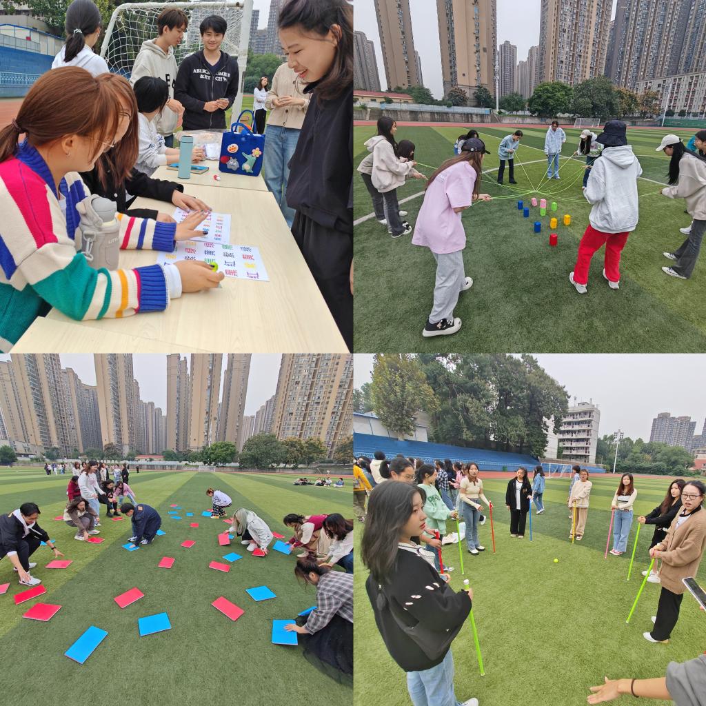 活动现场气氛热烈,各公司参赛队员尽情释放活力与热情,依次进行了“翻牌子”、“手有千结”、“无敌风火轮”、“跳跃比赛”等团体赛项目,并现场登记分数。在团体赛的同时,个人项目也趣味横生,“原地踏步”、“看图猜成语”、“看字识色”、“答非所问”、“立水瓶”等项目让参赛队以外的同学沉浸其中,在轻松愉悦的同时还能收获一份小奖品。这些活动项目轻松有趣,充分包含了娱乐性、协作性和竞争性,不仅需要个人的机智才干,更注重集体的配合,活动中纺大学子们与自己的好友或场上的同学友好交流、共同娱乐,每个人的脸上都洋溢着喜悦。