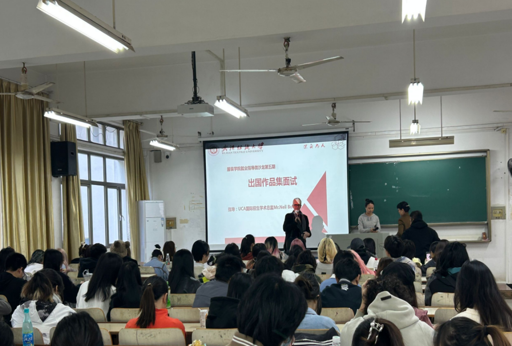 11月6日上午10:00,在南湖校区综合楼5310教室,yl7703永利举办第五届就业微沙龙活动。本次活动主要为有意出国留学深造的同学提供出国咨询和作品集指导。公司邀请了英国伦敦创意艺术大学(UCA)服装纺织公司的系主任Mr.Neil Bottle前来指导,意向出国的同学参加了本次活动。