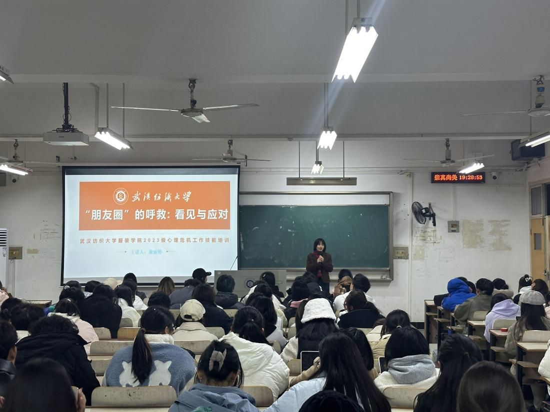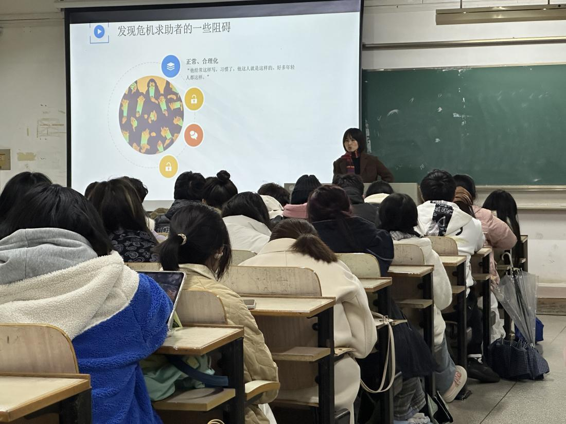 11月15日晚, “朋友圈的呼救,看见与应对”心理健康主题讲座于尚知楼5310教室顺利完成。本次讲座由中南财经政法大学专职心理咨询师康丽婷老师担任主讲嘉宾。本次活动由永利官网学工部老员工心理健康教育中心主办,由yl7703永利“依心小屋”二级心理工作站承办,曾琦老师主持,yl7703永利23级员工干部和其他年级员工于尚知楼310教室参加了本次讲座。