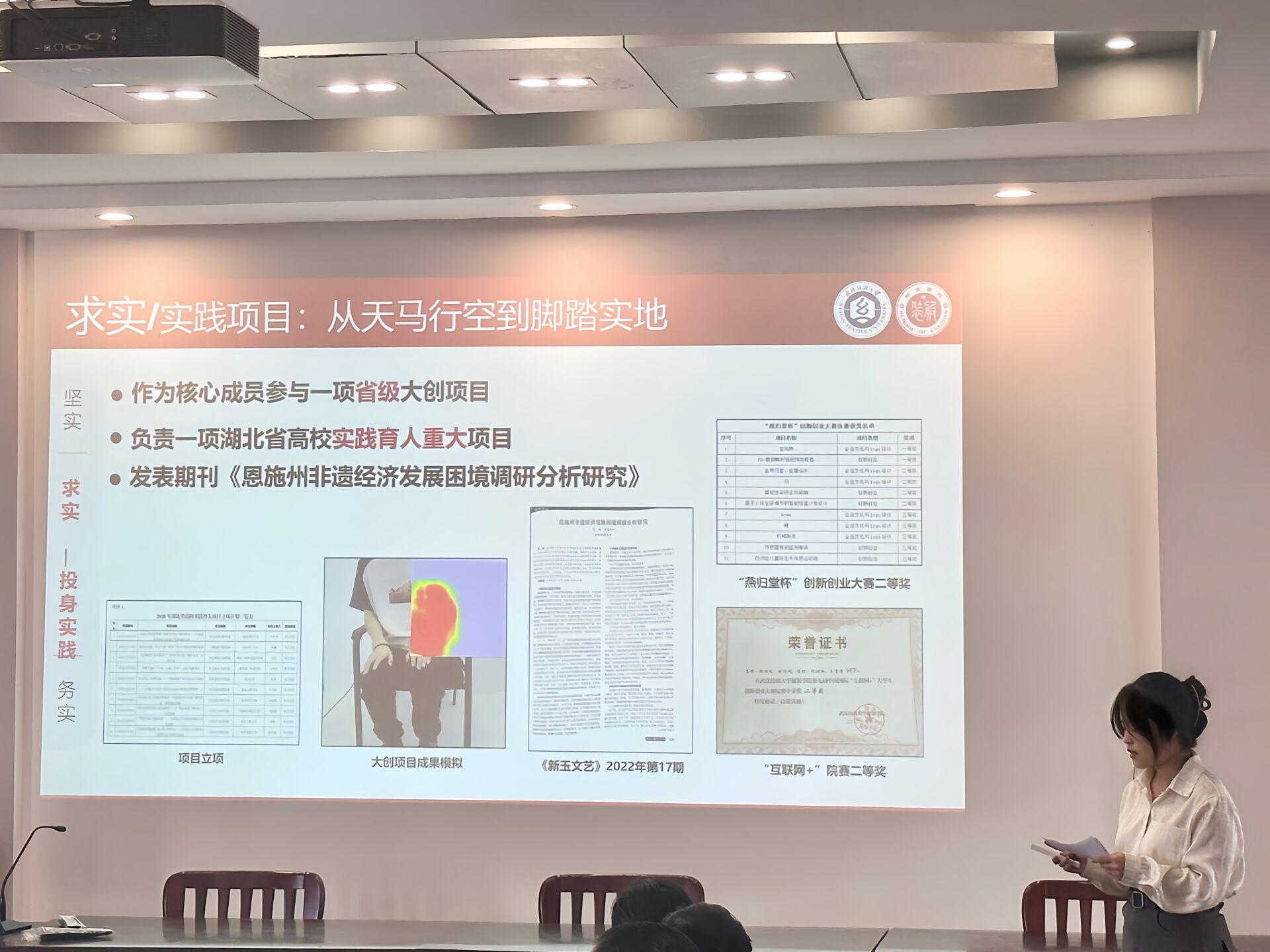 随后,9名参与本次国家奖学金答辩的候选人依次进行了PPT汇报展示,他们对自己过去一学年的学习成长进行了回顾总结,汇报了学业学习、学科竞赛、社会实践等方面的收获。评委老师认真听取汇报展示,查看有关申请资料,并严谨、客观给出评分。