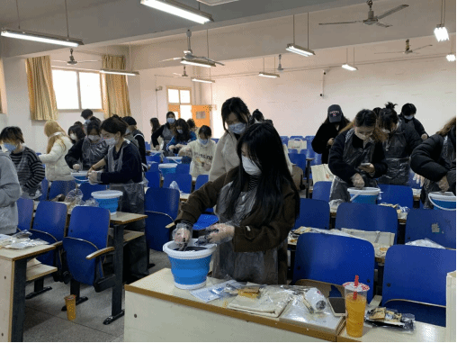 同学们怀着激动的心情,认真完成每一个步骤,并对最后的作品进行了展示和分享。周同学表示,在今年的“两会”上,习近平总书记强调了“着力赓续中华文脉、推动中华优秀传统文化创造性转化和创新性发展”。我们作为新时代的青年,从此次活动的参与到与王妮老师的交流,我们深刻感受到了智慧与灵感在蓝染的世界的相互交织,传承与创新的呼应引人思考,我们青年学子们更应该传承文化,坚定自信,争做时代新人。