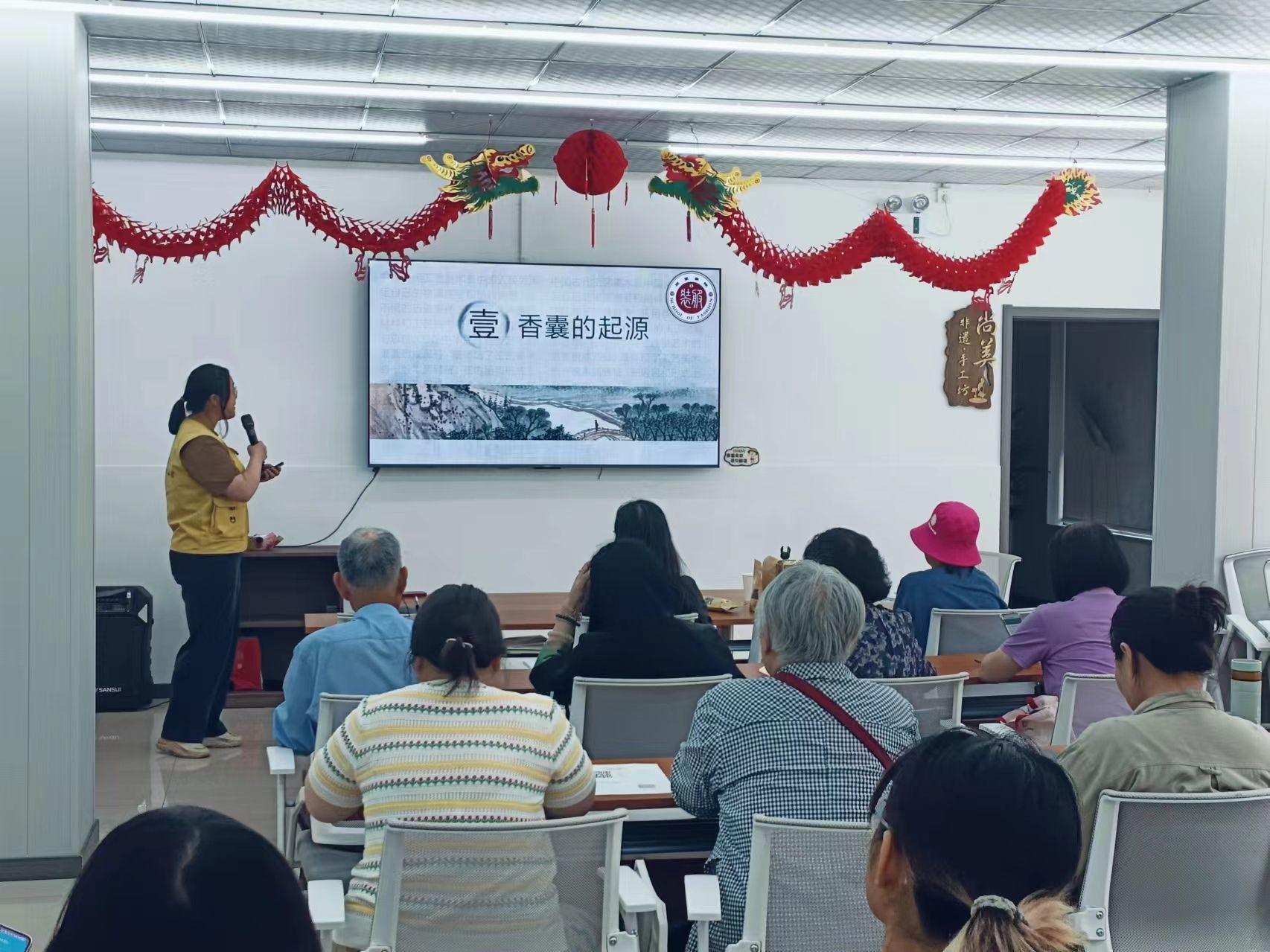 活动伊始,志愿者对古法非遗香囊的历史背景进行介绍,让社区居民对香囊的历史文化有了一定了解。