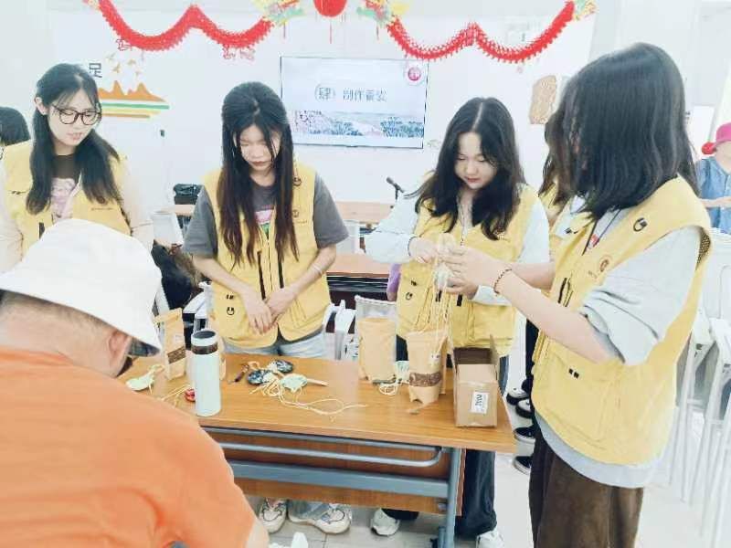 接着,社区居民们在志愿者指导下在亲手制作香囊。在制作过程中,志愿者耐心地给居民们讲解步骤,一起动手的同时,也更加了解传统非遗文化内涵。
