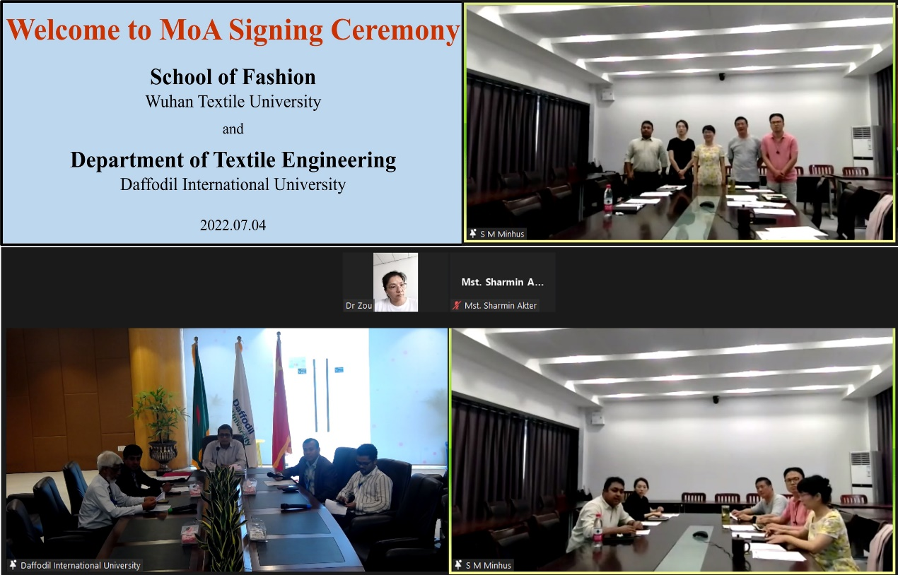 MoA Signing Ceremony- Collaboration between School of Fashion, Wuhan Textile University and Department of Textile Engineering, Daffodil International University, Bangladesh