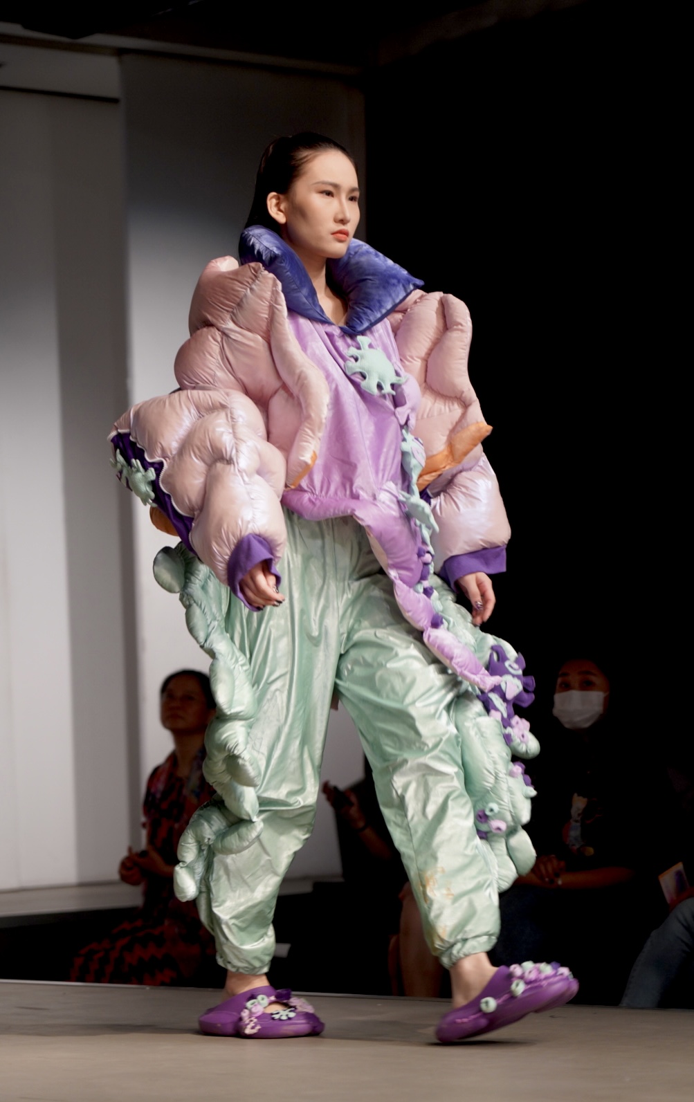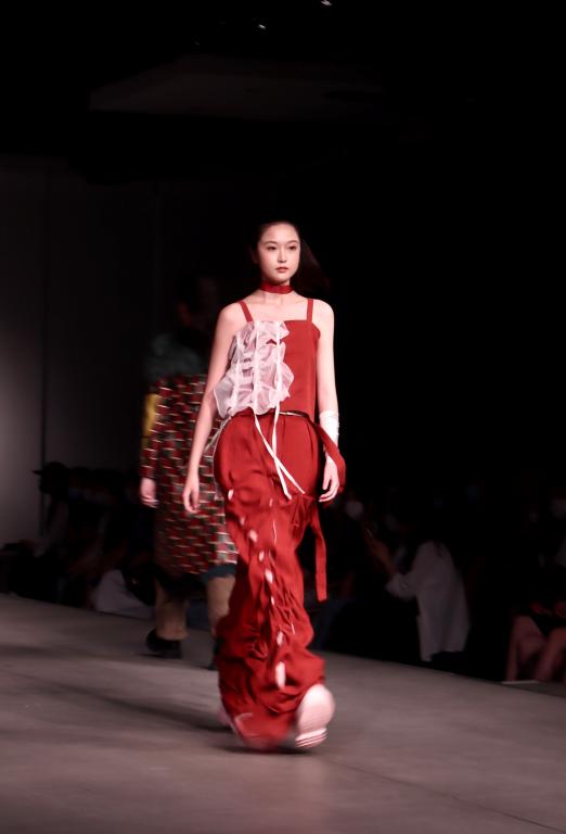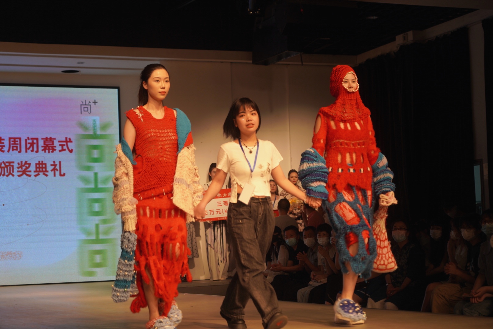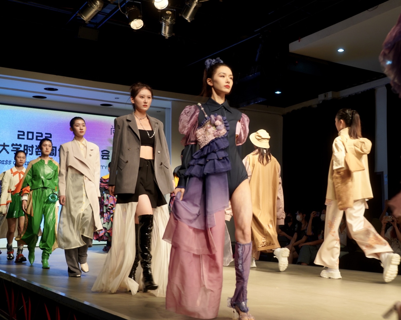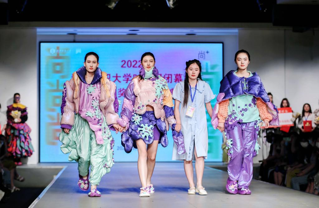 此次的闭幕大秀,是在全院2022届毕业生作品中优选32个系列共82套作品,作品延续服装公司的教学优势与特色,立足创意成衣,在“尚+”设计主题和可持续理念下,从风格、造型、面料、色彩、情感、科技、生活方式等多个维度出发,融合时尚与可持续,展现服装学子的创意思维和独特个性,诠释设计师们对可持续设计理念的理解。